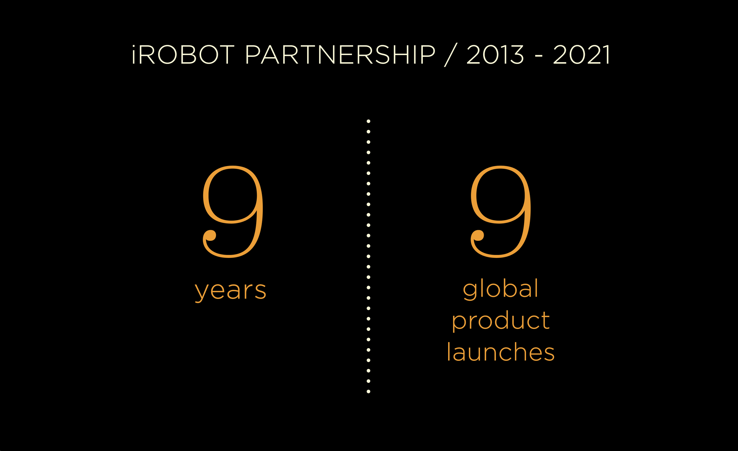 First introduced in 2002, Roomba was initially seen as a luxury toy but became a cultural phenomenon starting a new category and ushering robots into our homes. Over time, competitive pressures prompted iRobot to reestablish its leadership and increase brand awareness. During my nearly decade-long collaboration, iRobot more than tripled its revenue and quadrupled its stock price, eventually announcing its sale to Amazon. As strategist and creative lead, I focused on crafting iRobot’s brand and product stories across various touch points, including global TV campaigns, product launch videos, social content, event and PR videos. The sizzle video below highlights the shift from a product-minded, engineering-driven company to a successful people-centered brand.